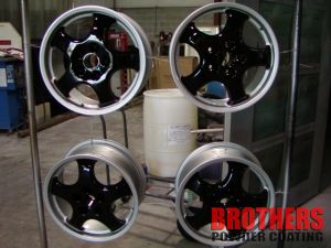We can put the most amazing finishes with wheel powder coating on just about any wheel manufactured. All wheels are sandblasted down to the bare metal, put through the proper chemical wash depending on the substrate, primed with an anti-gassing epoxy hybrid, then the top coat of your choice. Your custom powder coating colors include the highest gloss single stage powders made, satin or flat finishes, or 2 stage candies, transparents, and some of the wildest metallics out there – whatever you choose.